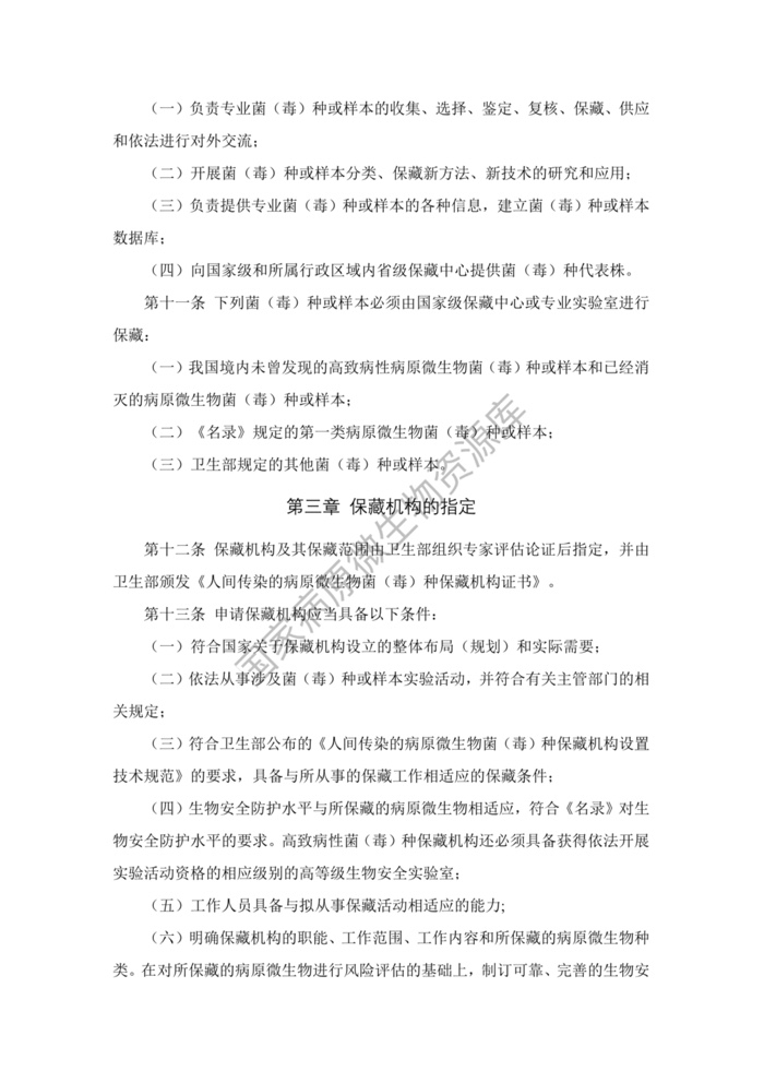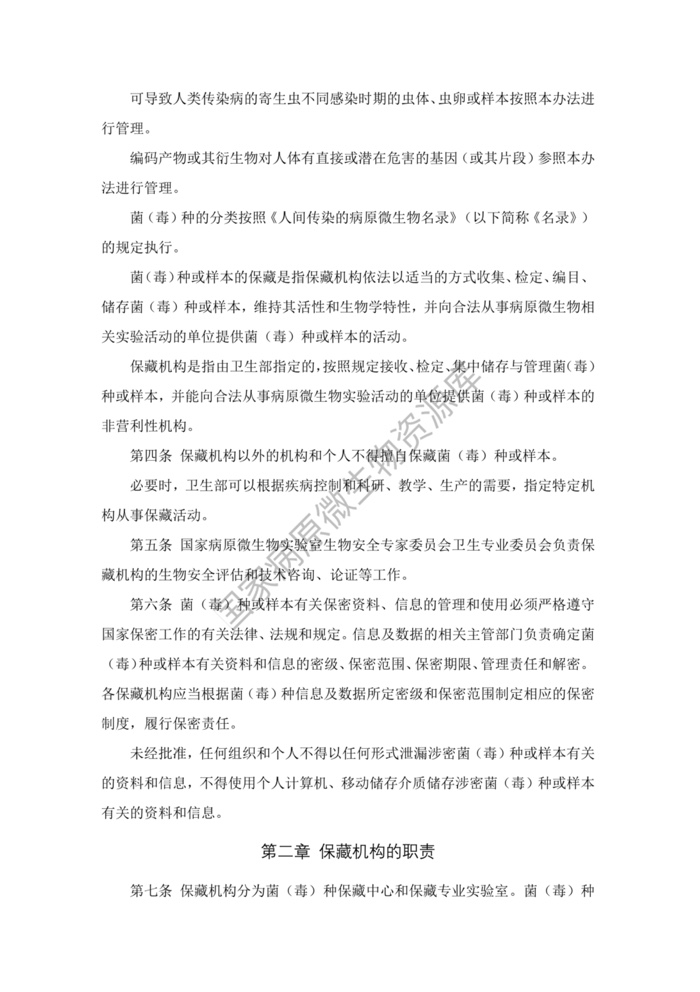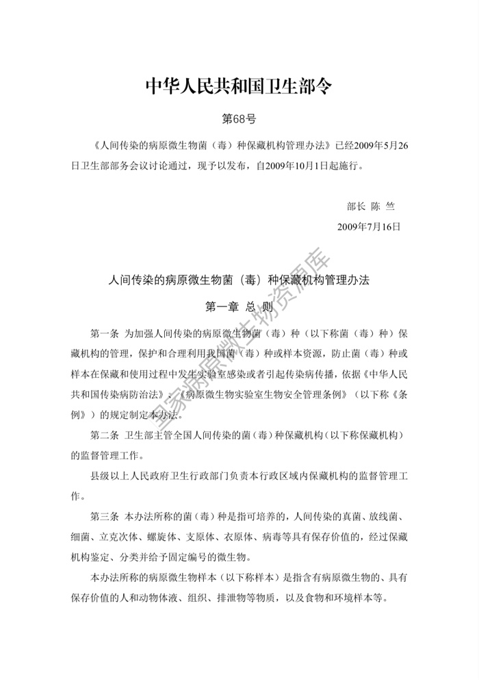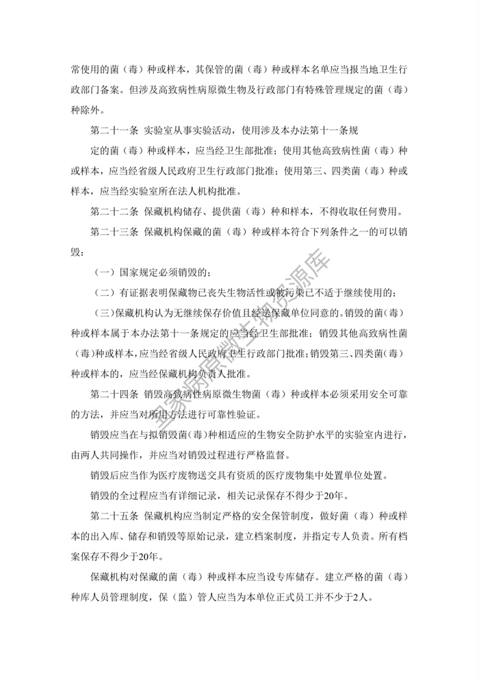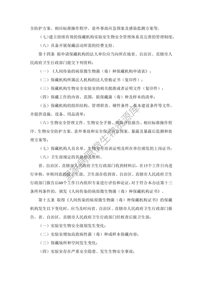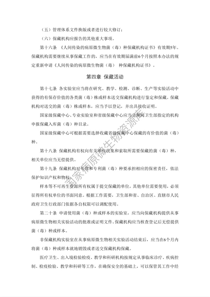 《人间传染的病原微生物菌(毒)种保藏机构管理办法》