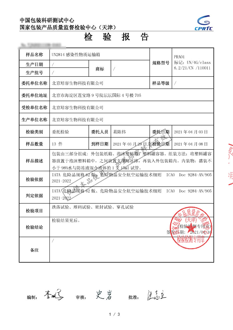培容生物所有产品检测报告均已更新至最新版(2021年4月)